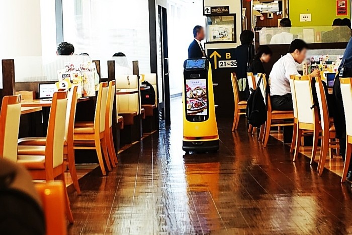 するとしばらくして、配膳ロボットが料理を運んで来て、私の席の横で停止する。