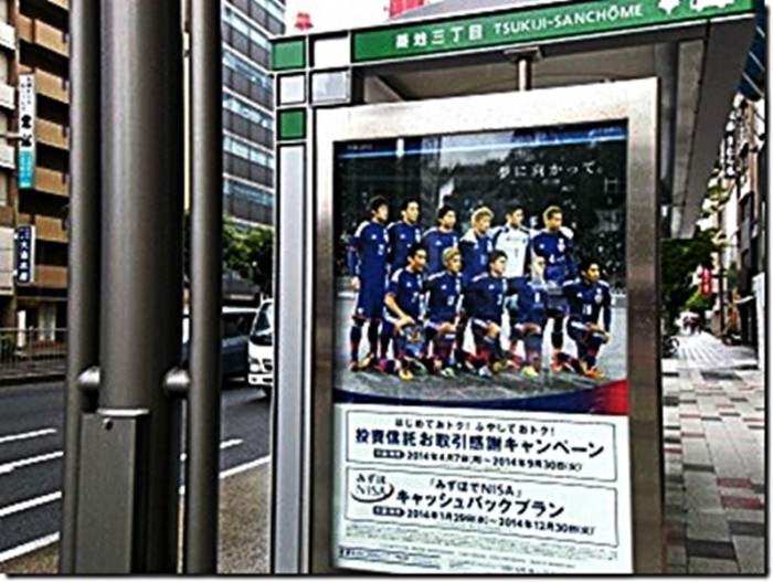 盛り上りはアチコチで見られ、みずほ銀行では行員がサムライブルーのユニフォームで仕事をしているから驚き。