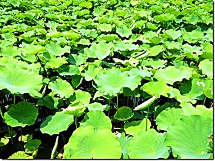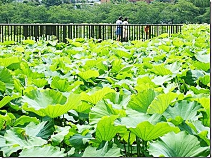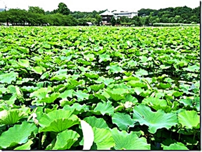 前回は5月28日に来てみたが、あれから1ヵ月弱で池は蓮の葉で覆われていた。