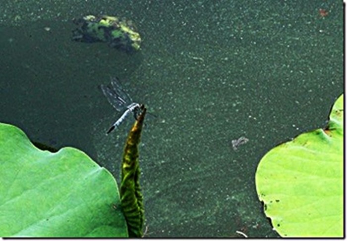 僅かに見える水面を覗いてみたが、蕾は見えない。