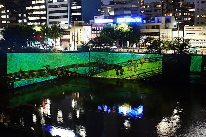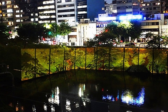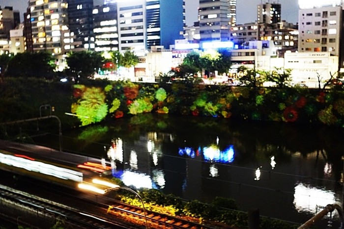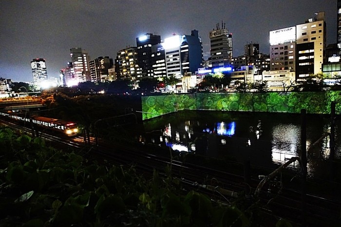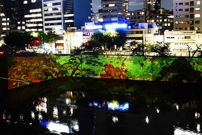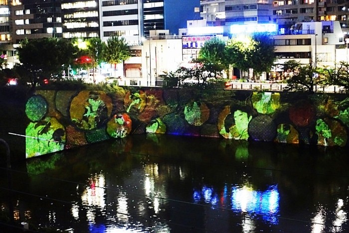投影場所は市ヶ谷と飯田橋の間の、江戸城外濠牛込濠の法面である。