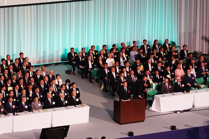 司会者の紹介で、国会議員、地方議員、関係団体などが紹介される。