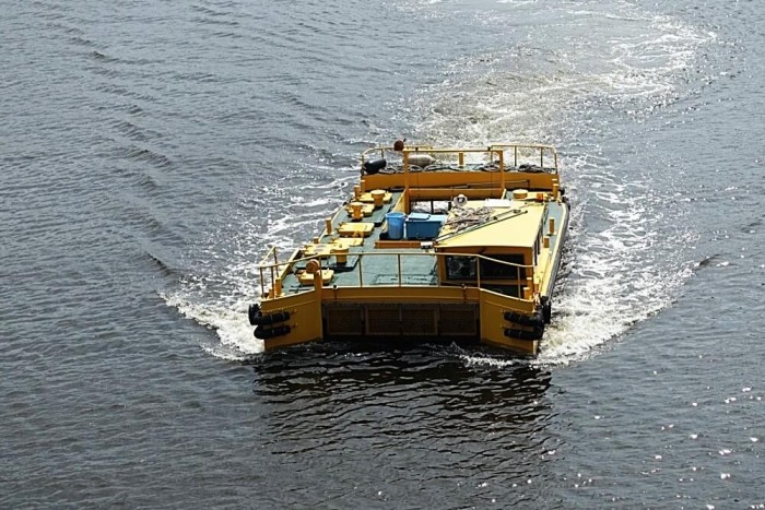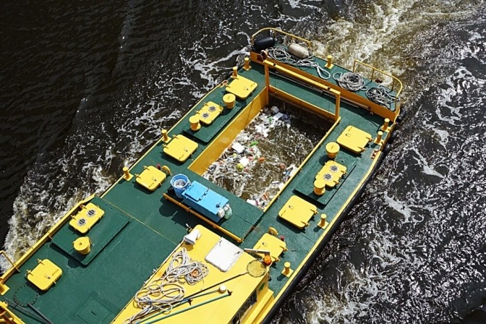 これは水上清掃船で、海や川のゴミを掬い上げているのである。