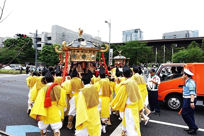 皇居の後には丸の内仲通りから銀座、京橋、日本橋などの氏子区域を廻り、午後5時に日枝神社に戻る。