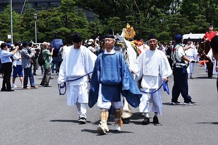 王朝装束を身に纏った500人が300メートルの祭礼と行列になり、永田町・四谷・麹町・九段・皇居・東京駅周辺・霞が関・銀座・日本橋など約23キロを練り歩くのである。