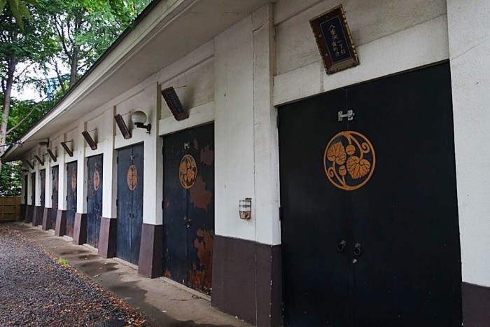 赤鳥居は京都の伏見稲荷神社が有名だが、日枝神社も小粒だが外国人観光客には人気となっている。頂上の左手には、山王祭で使われる神輿の倉庫「御仮場」があり、その先には神幸祭の主人公の山車の倉庫「山車庫」があった。神輿は9区画に分れた倉庫に保管されていた。