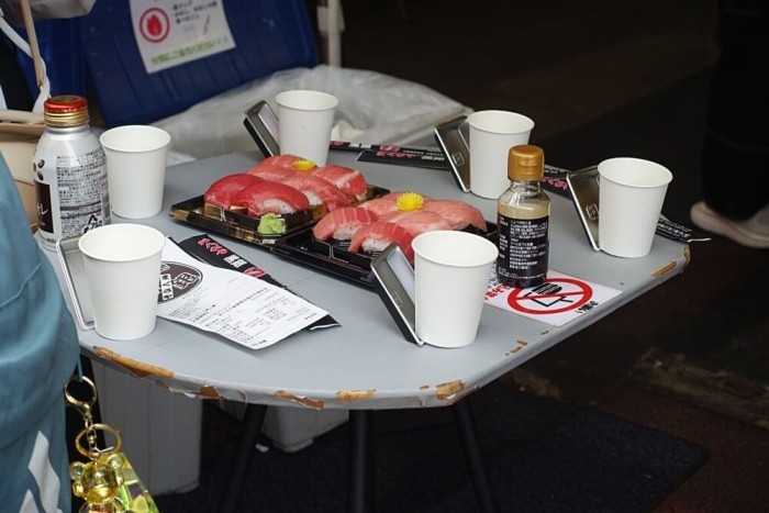 それが仲買や卸が豊洲市場に移ってしまい、苦肉の策として「立ち食い」を始めたのが大当たりしたようだ。飲食店相手の小規模の店は閉店し、その場所を立ち食い店に貸し出した。それが儲かると分かり、次々と新規の店がオープンした。