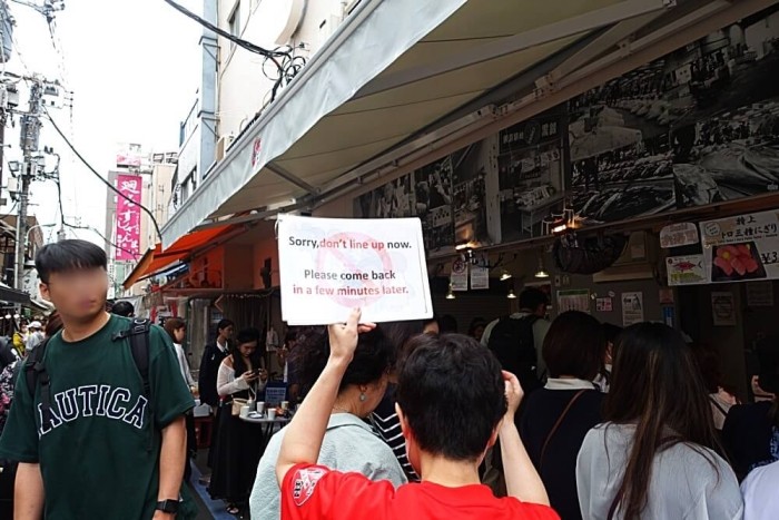 「まぐろの握り」寿司屋の前では、店員が「並ばないで下さい。数分後にもう一度来て下さい」なんて札を持って立っている。これじゃ、儲かるはずだ。