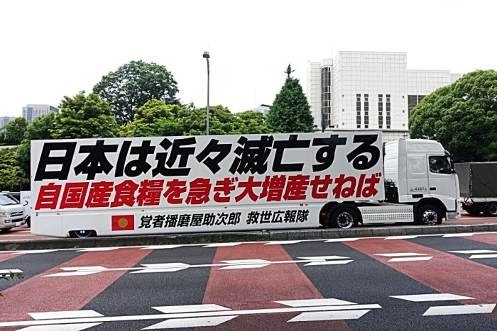 今回見た車には「日本は近々滅亡する」と、宣伝文も穏やかじゃない。