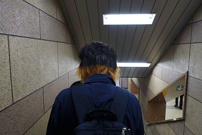 エスカレーターに乗ったら、私の前に若者の男性がいた。
