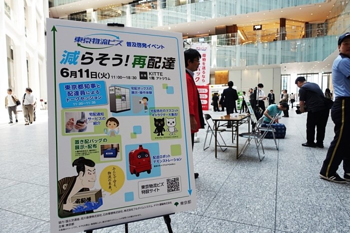 東京駅丸の内側のKITTEで、東京都と宅配業者がイベントを開いた。