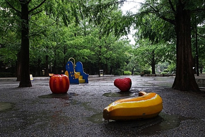 子供の声もせず、遊具が雨に濡れている光景は、とても寂しさを感じさせる。