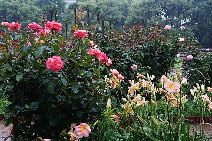 もう帰ろうかと思ったが、「日比谷公園のユリの花が見頃」との情報があったので、我慢して見に行った。日比谷門から中に入ると、雨の中でも歩いている人はいる。