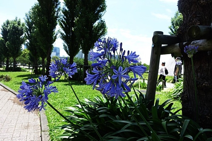 歩き出したら、ダイバーシティのそばでアガパンサスが咲いているのが見えた。