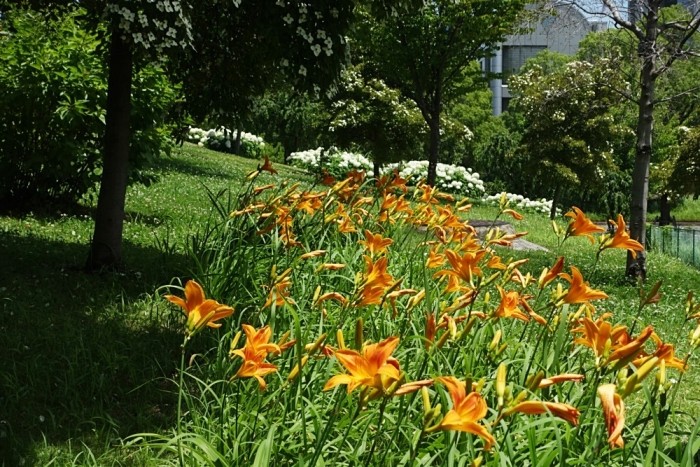 お花畑のような場所に植えられているのは、「ヤブカンゾウ」というユリだった。