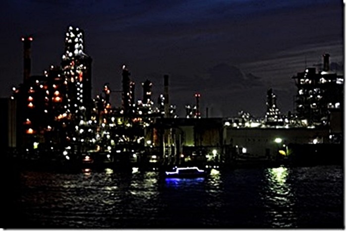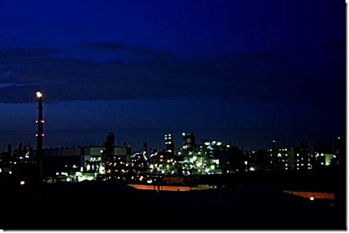 3ヵ所目でやっと工場に灯が点る。工業出身者の私としては、工場の夜景はどうということもない風景である。