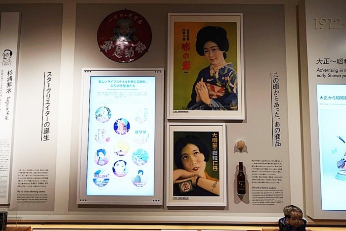 時代ごとに広告ポスターが展示してあり、私達には懐かしい。