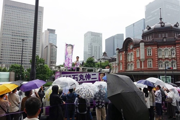 そんな時に都知事選挙に立候補した石丸信二候補が、東京駅前で午前9時から街頭演説をすると知り床屋の前に聞きに行ってみた。