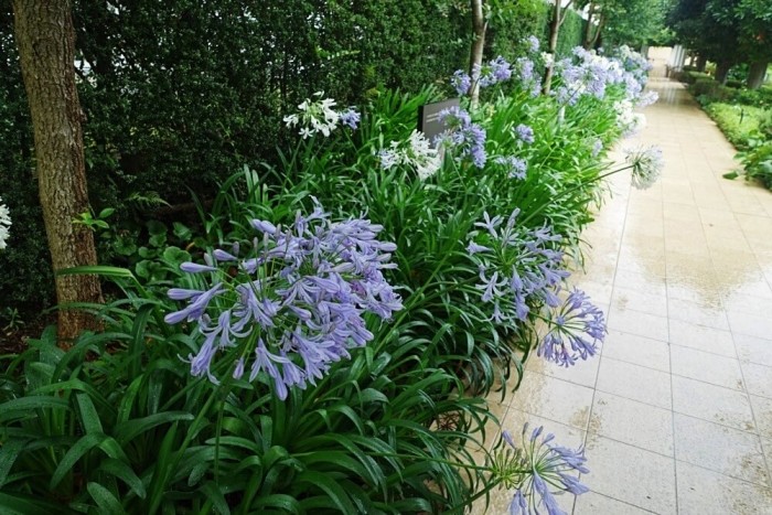 タワーマンションの生垣に沿って、100メートル近く続くアガパンサスの花壇だ。
