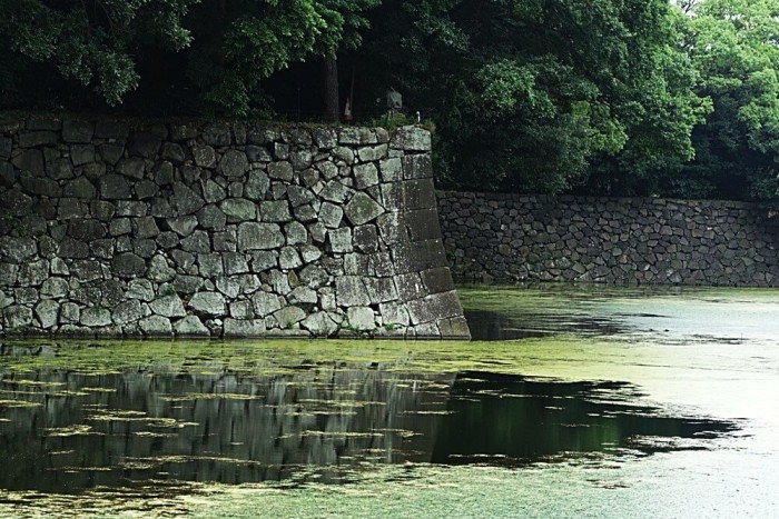 わずかに開いた水面に、石垣の模様が映っている。とても綺麗だ。