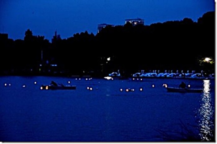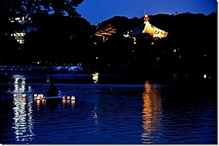 精霊流しは上野寛永寺の辨天堂の近くのボート池で行われた。