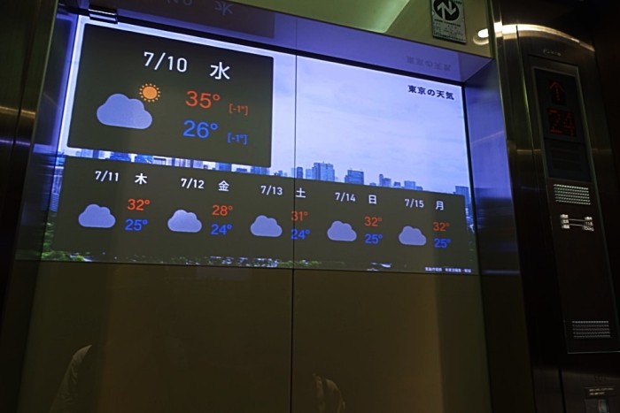 エレベーター内のサイネージ天気予報