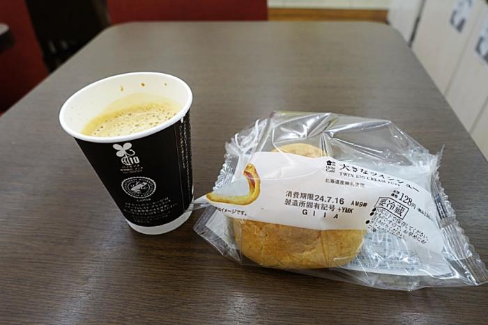 コーヒーと大きなツインシューを買ったら、258円だった。