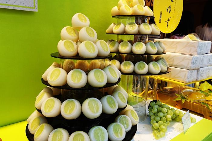 するとそこには「シャインマスカット大福」が山積みになっていた。