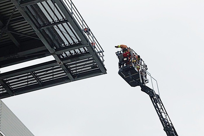 そしてアームを伸ばして、消防署の屋上まで近付いて行った。