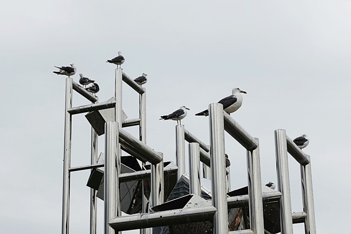 晴海埠頭のモニュメントに止まる「ウミネコ」