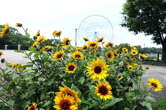 葛西臨海公園駅前から、ヒマワリ畑に向かった。