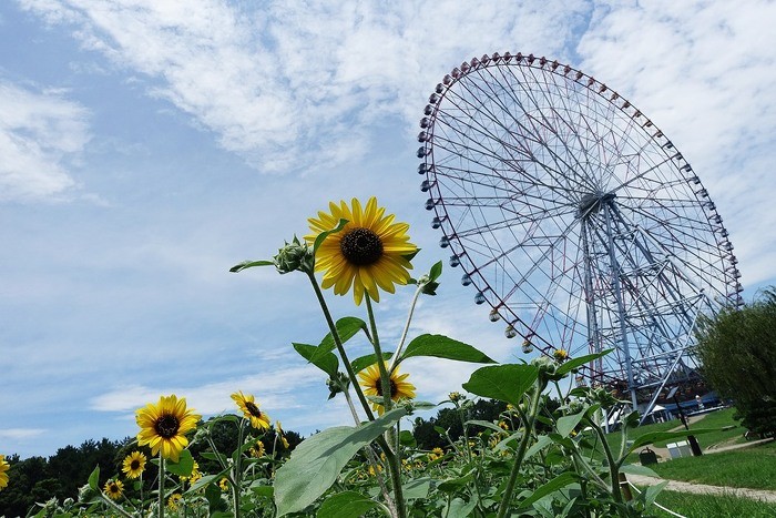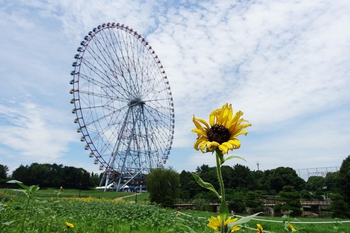 大観覧車に向って続いて3ヵ所のヒマワリ畑があるが、2番目しか咲いていない。