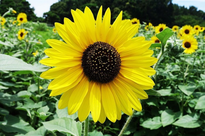 咲いている畑のヒマワリの花は小さ目で、駅前の鉢植えと同じ種類のようだ。