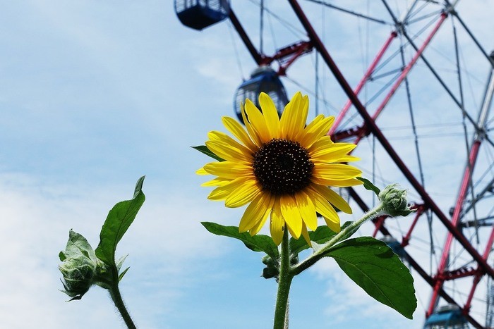 昨年の記憶では、大観覧車に近い畑のヒマワリが大きかったような気がしている。
