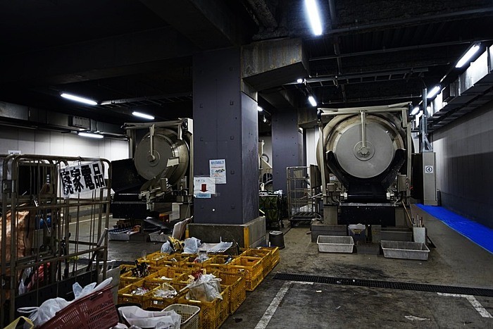 ゴミ圧縮機が4台ある(ゴミ置き場)