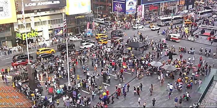 そんな最中に「ニューヨークではどうか?」と思い、タイムズスクエアのLIVEカメラを見てみた。午後5時39分の映像だが、特に変な動きは無いようだった。