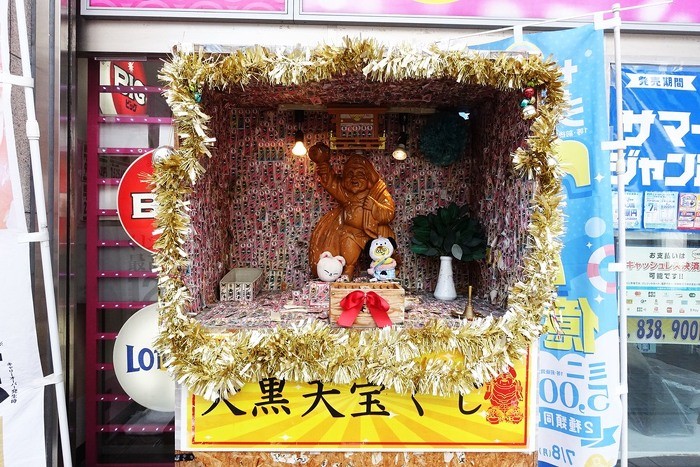 「大黒天宝くじ」(神社仕立てで、お賽銭箱もある)