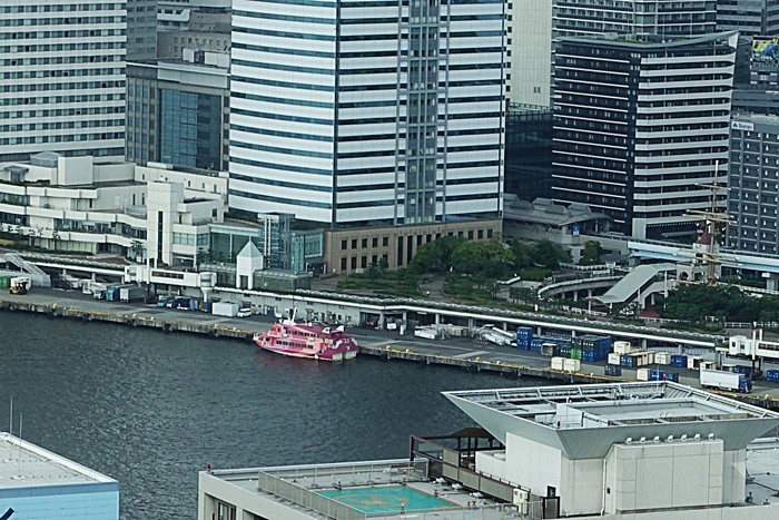 8月23日(金)の朝に窓からみたら、そのピンク色の船が停泊していた。