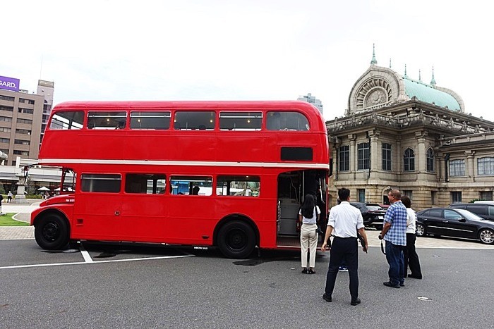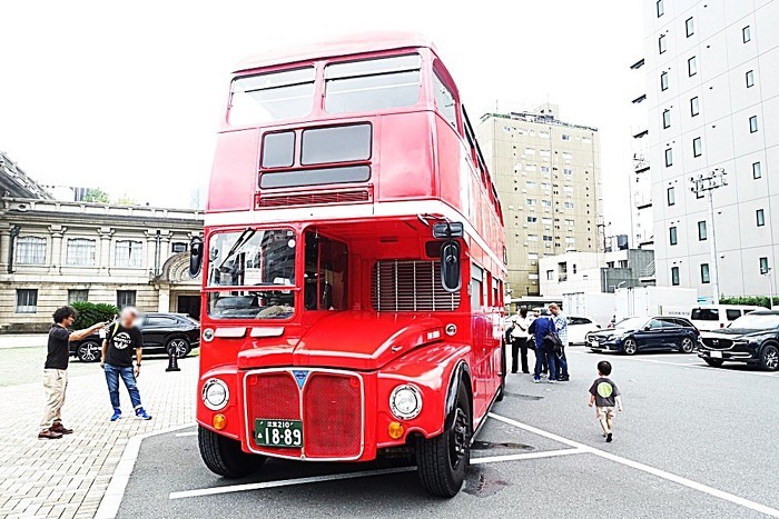 いつものように家を出た。築地6丁目で都バスを降りて、築地本願寺にお参りすることにした。行くところが思い付かない日には、築地本願寺の本堂で静かに時を過ごす。裏門から境内に入ると、駐車場に真っ赤な2階建てのロンドンバスが停まっていた。