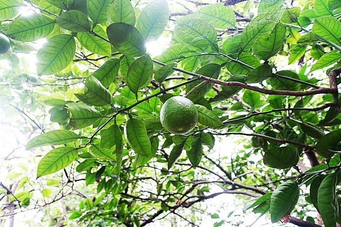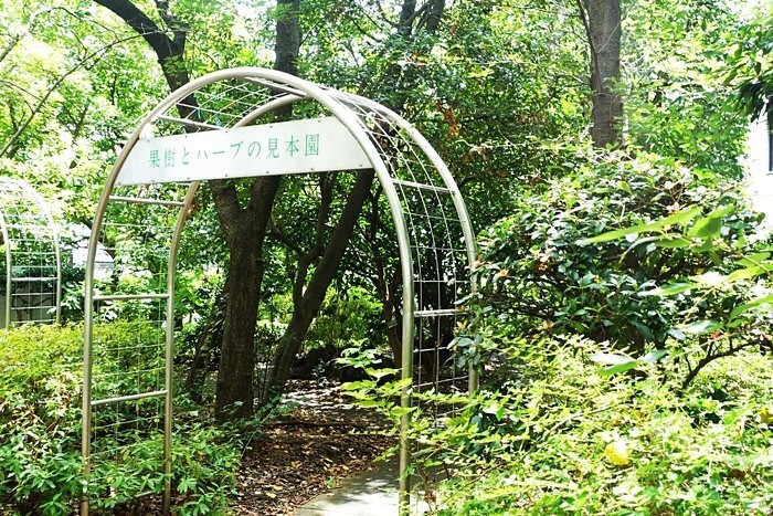 全体でも100坪くらいの公園だが、中ほどにアーチがあり、そこには「果樹とハーブの見本園」と書いてある。「なんだろう?」と、興味津々でアーチをくぐる。あまり手入れの行き届いていない木々が茂っている。足元には柿とカリンの青い実が落ちていた。