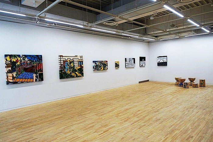 パンフレットには作者が次のように書いている。『ほぼ毎日、自転車に乗る。家からアトリエに移動する。自分の動力で進むから、自分のペースで景色が流れる。ちょっと「そこ」に見えたものに追いつくと、いつのまにか「ここ」にある。時々、信号で停まるなら、より鮮やかに建物や緑、歩く人の顔が見えてくる。止まることで見つかる発見もあるけど、止まってばかりだと進まない。自転車でアトリエに着いたら、「そこ」はもう「ここ」になった』。