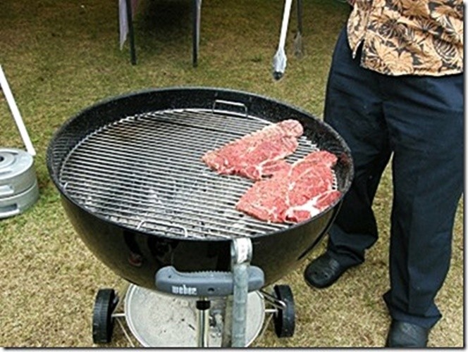 やっとアメリカ製の特製バーベキュー機材のWEBERグリルを使って、肉を焼く。