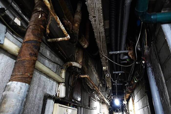 水道の配管パイプ、電気配線、太いのは下水管だろう。