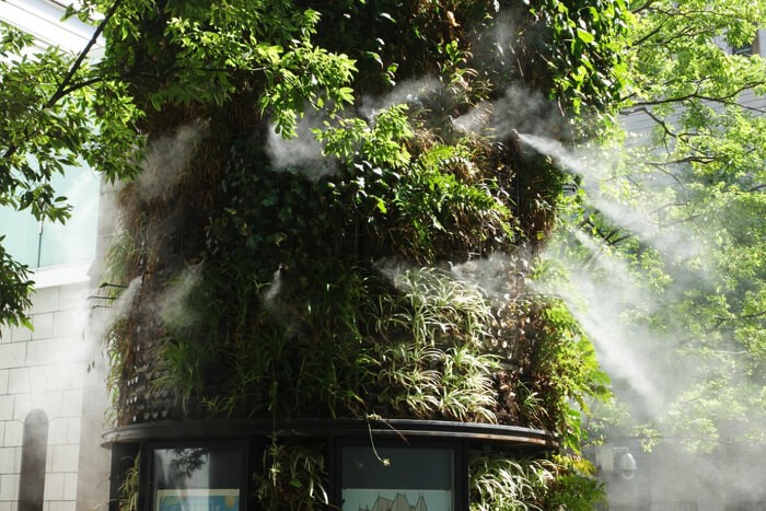 美術館の横から中に入ると、いきなりミストの洗礼を受けた。