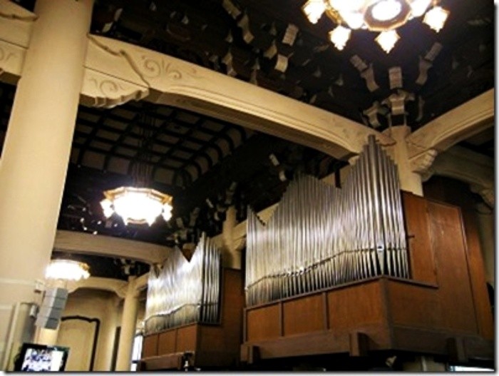 ここは開かれたお寺で、ハイカラにも毎月最終土曜日の12時半から30分間の無料のパイプオルガン演奏会がある。 また時々、法話や講演会がある。