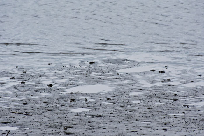 そこに行って泥干潟を見たら、たくさんの穴が見えた。