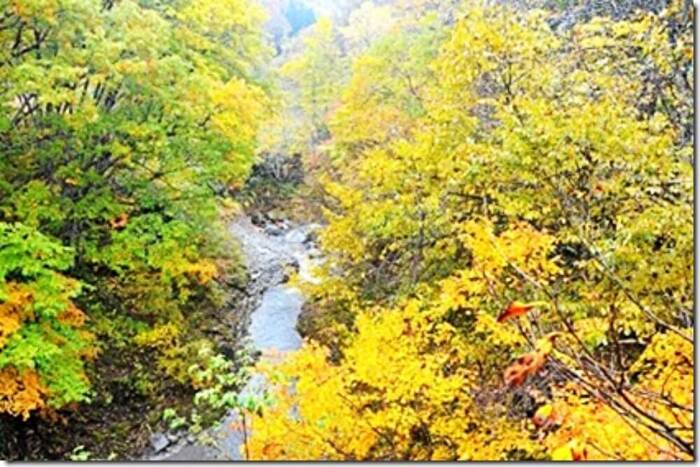 宿の女将にこの辺りで紅葉の綺麗な場所を聞いてみた。
