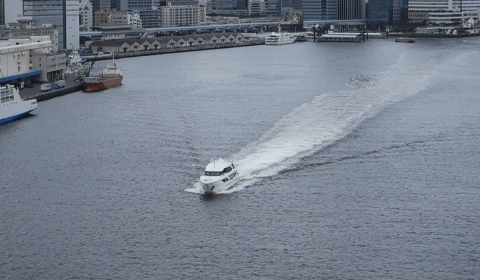 東京湾では帆船は帆を張れないので、小さなエンジンで進むので非常に遅い。