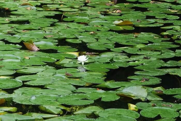 終ったと思っていた睡蓮の花が、ところどころで白い花を咲かせていたのにはびっくりした。調べてみたら今年の7月20日に、小石川後楽園の睡蓮に付いてブログに投稿している。睡蓮の花は3ヶ月も咲き続けるのか?この夏の高温が関係しているのか?