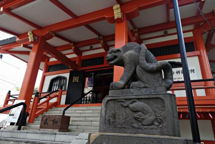 以前から気にはなっていたのだが、石段左右の狛犬の姿が変で「虎」なのである。